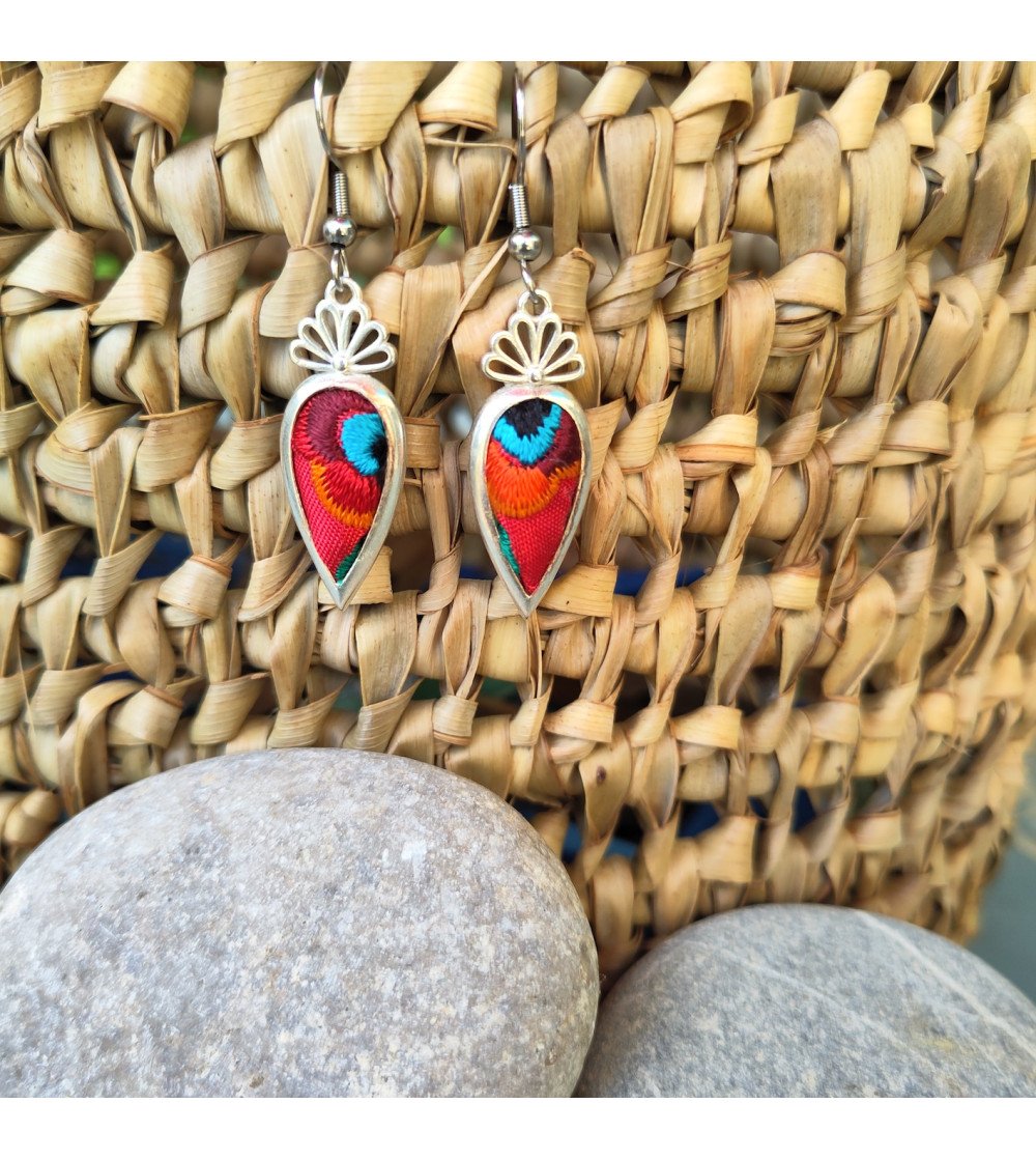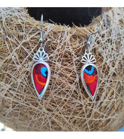 Explore the delicacy of our embroidered earrings from the Miao ethnic group, designed in a drop shape with vintage embroidery, extremely light and delicate, and made in accordance with fair trade.