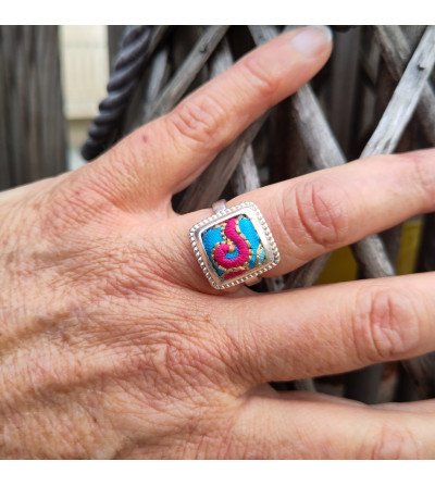 Cette petite bague originale et élégante, de forme carrée, conçue à la main par des artisans talentueux de l'ethnie Miao, réinvente la tradition pour sublimer votre main avec une touche bohème et ethnique. Ajustable, elle s’adapte à tous les doigts et offre un confort parfait.
