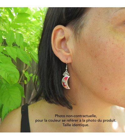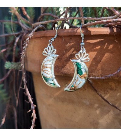 Explorez la délicatesse de nos boucles d'oreilles brodées de l'ethnie Miao, conçues dans une forme de lune avec une broderie vintage, extrêmement légères et délicates, et réalisées dans le respect du commerce équitable.